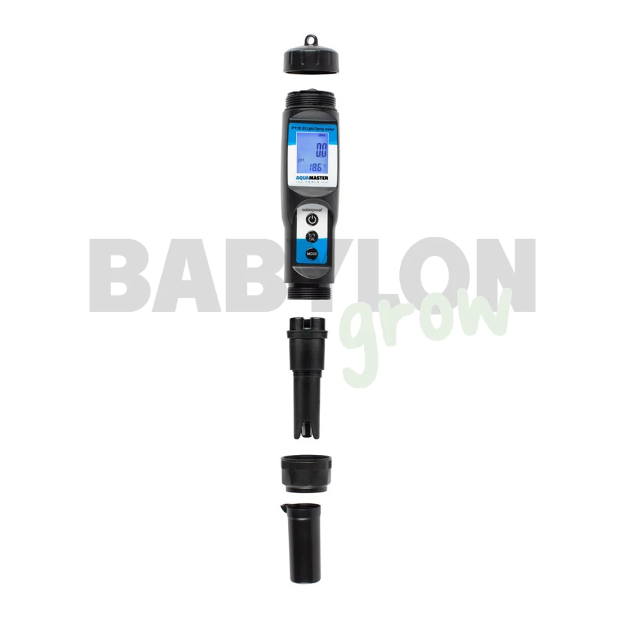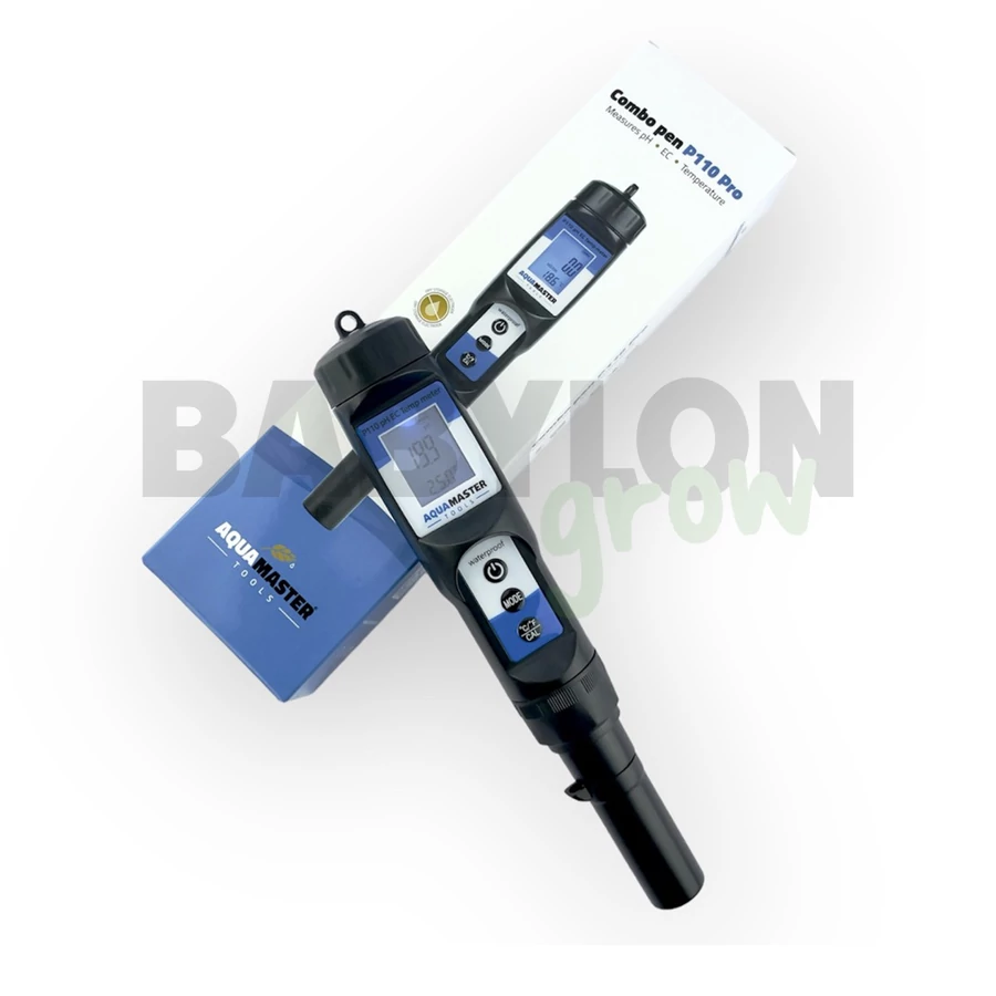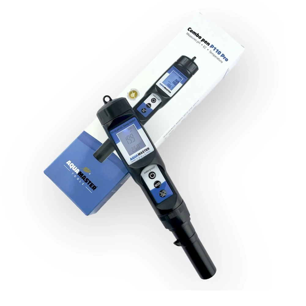 Az Aqua Master P110 Pro kombinált pH és EC mérő ideális digitális kézi mérőeszköz különféle folyadékok pH-értékének, vezetőképességének és hőmérsékletének mérésére. Rendkívül pontos, és tökéletesen illeszkedik a kézbe az ergonomikus gumi hátlapnak és a kupakot biztonságosan tartó vezetéknek köszönhetően. IP67 vízállóságának köszönhetően akár lebeghet is a víz felszínén. A rendszeres alapmérések lehetővé teszik a növények tápanyagfelvételének optimalizálását. Javasolt a mérőt függőleges helyzetben, a védőburkolatban lévő KCI tárolóoldattal tárolni. Használati útmutató itt érhető el.