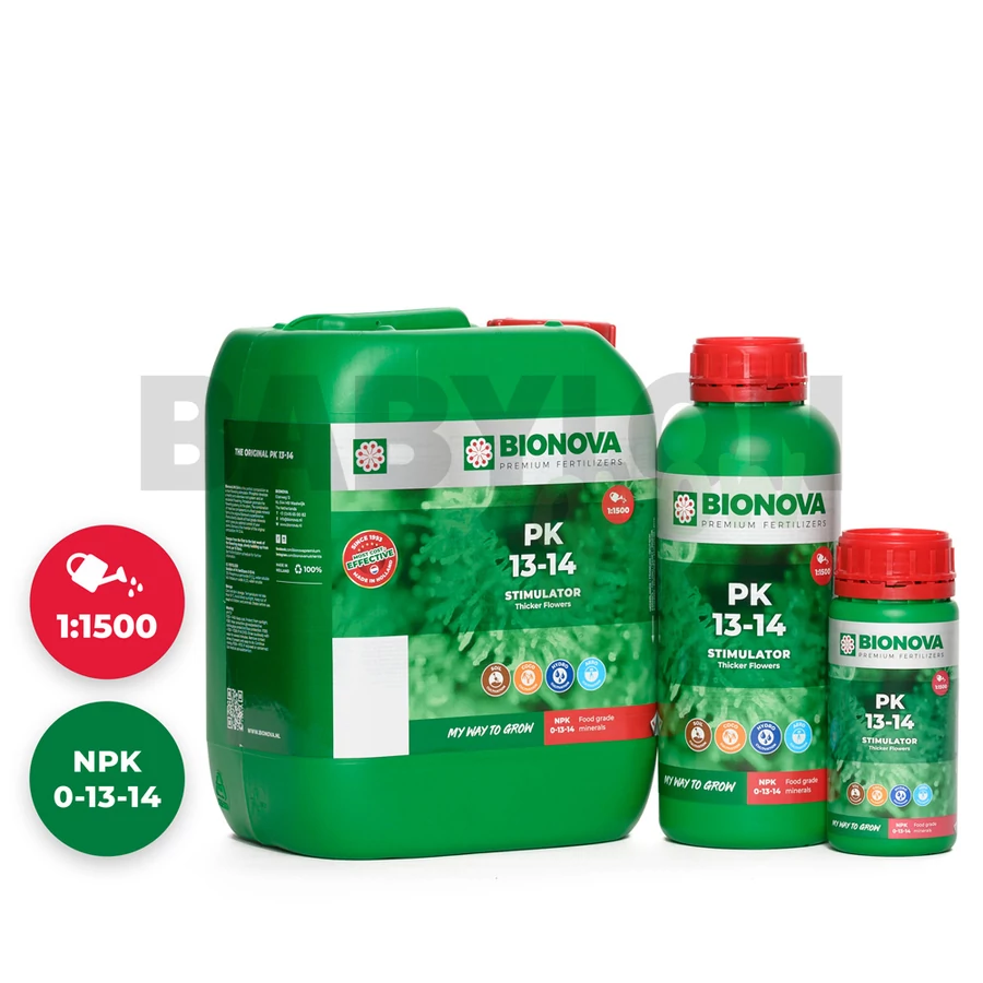 BioNova PK13-14 foszfor és kálium tökéletes kiegyensúlyozott kombinációjával az egészséges és kiterjedt gyökérrendszer fejlődését segíti, így járulva hozzá a bőséges virágzáshoz. A foszfor aktiválja a virágzást, a kálium pedig serkenti a virágzási potenciált. Mivel alig tartalmaz ballasztsókat és nehézfémeket, így a tápoldat a gyökérrendszerben is közvetlenül fel tud szívódni, és nem maradnak nehézfémek a végtermékben.