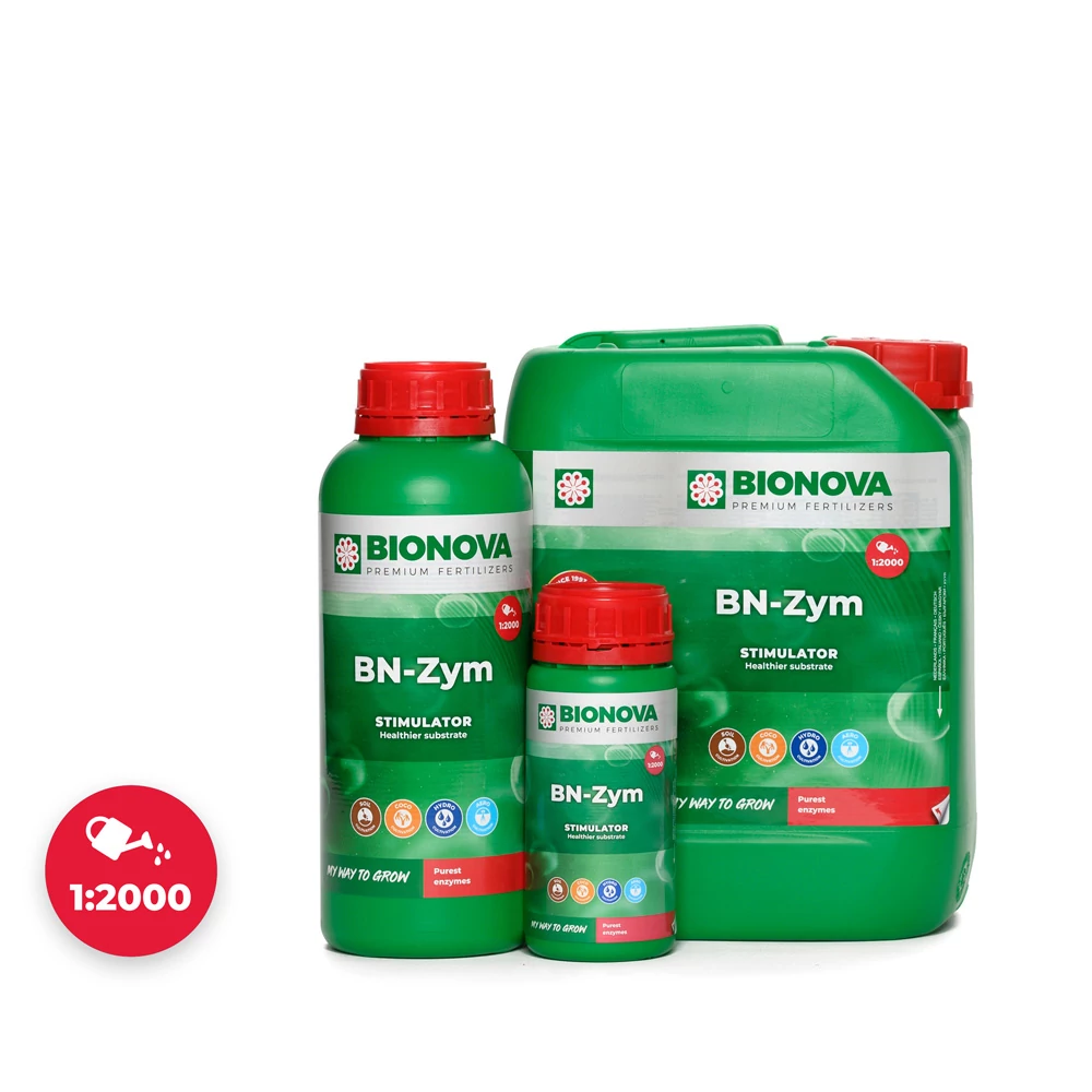 BioNova Zym egy természetes biokatalizátor (folyamatgyorsító), specifikus enzimeken alapuló közegépítő és közegjavító. Az enzimek serkentik minden közeg vízmegtartó képességét, ami lehetővé teszi a víz gyorsabb és jobb bejutását a közegbe. Fokozza a baktériumok aktivitását, ami az aljzatban lévő tápanyagokat és ásványi anyagokat közvetlenül felszívódó anyaggá alakítja. A Bionova Zym egy katalizátor, amely átalakítja a hulladékanyagokat, és felszívódó tápanyagok formájában visszajuttatja azokat a terménybe. Az enzimek speciális fehérjemolekulák, és számos biokémiai folyamatban katalizátorként működnek. Az enzimek legszembetűnőbb jellemzői közül néhány a sajátos működési módjuk és különösen a sebességük. A cukor vegyszerek segítségével alkohollá történő átalakítása általában több hetet vagy akár hónapokat is igénybe vesz, míg az enzimek segítségével ez csupán néhány másodpercet vesz igénybe. Minden talajkeverékhez alkalmazható és beltéri és szabadtéri művelésre egyaránt megfelelő.