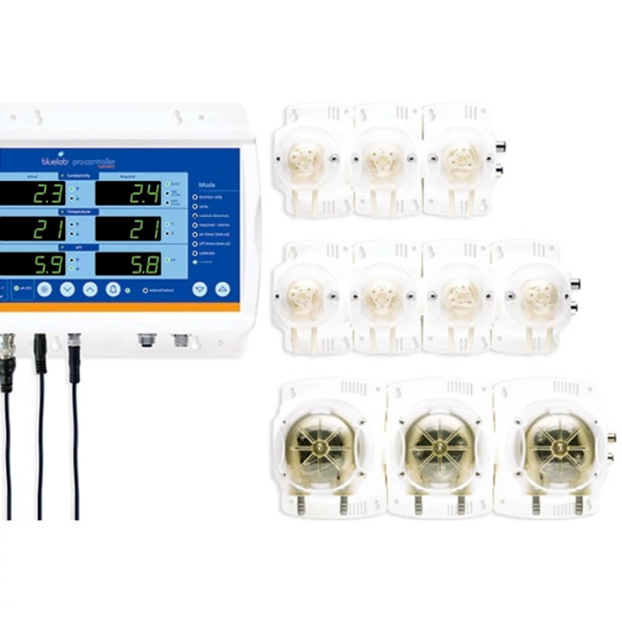- perisztaltikus szivattyúk a tápanyagok és a pH pontos és egyenletes adagolásához