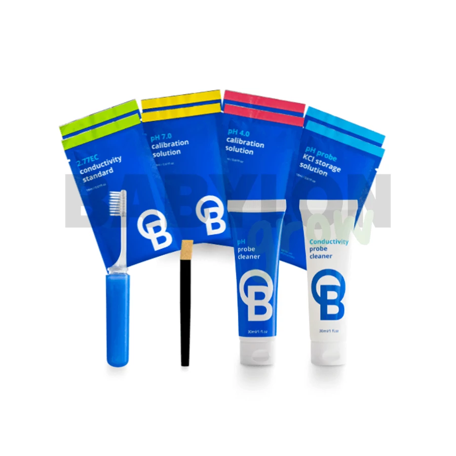 - Bluelab Probe Care Kit (pH 4,0, pH 7,0 és KCl oldatok a pH toll kalibrálásához és tárolásához, valamint 2,77 EC standard oldat tisztítás utáni teszteléséhez)
