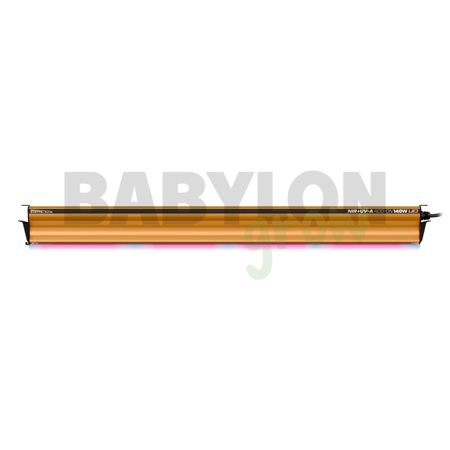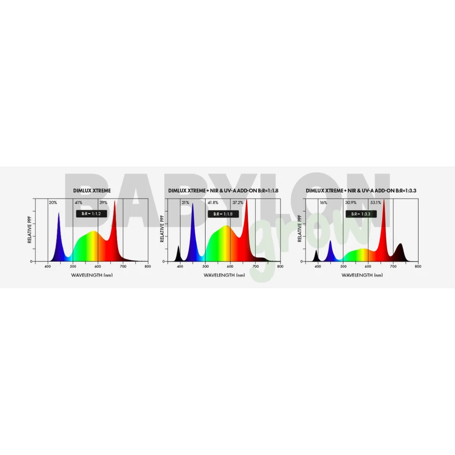 Dimlux Xtreme Series NIR + UV‑A Add‑On 140 W LED – Magas teljesítményű spektrum-kiegészítő, amely 100 W Far‑Red és 40 W UV‑A LED-del támogatja a Dimlux Xtreme 750 W és 1000 W rendszerek teljesítményét. Állítható spektrum, passzív hűtés, integrált vezérlés Maxi Controller-rel vagy harmadik fél kontrollerrel, interlink-stabilitás, IP50 védelem, IEC 62471 biztonsági minősítés. Ideális megoldás a fotoszintézis fokozásához, immunerősítéshez és terpéntermelés maximalizálásához professzionális termesztők számára.