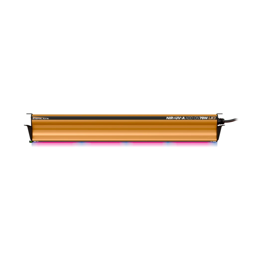 Dimlux Xtreme Series NIR+UV‑A Add‑On 70W LED – Prémium kiegészítő egység az Xtreme 500 W LED világításhoz. 50 W Far‑Red és 20 W UV‑A fényforrásaival fokozza a fotoszintézist. Erősíti a növényeket, növeli a terpén- és gyantatermelést, valamint gomba-ellenállást biztosít.