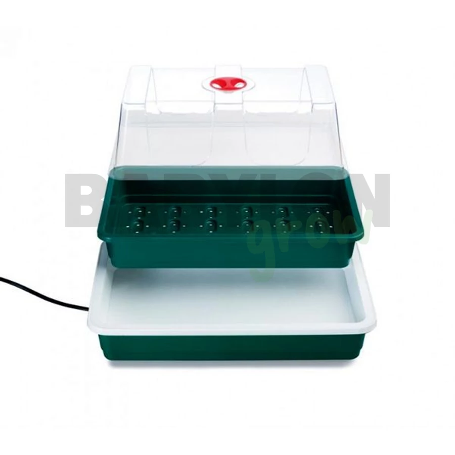 Kompakt elektromos propagátor 8 wattos fűtött talppal. Ideális vetőmagokhoz és dugványokhoz. Fröccsöntött növesztő tálcával és kristálytiszta, magas kupolával ellátott, szellőzővel ellátott burkolattal rendelkezik az optimális növekedési feltételek megteremtése érdekében. A One Top elektromos szaporító ideális kompakt egység zöldségek, virágok vagy fűszernövények termesztéséhez. Legyen szó magvak felneveléséről vagy dugványok gyökereztetéséről, ez az egyszerű, nem termosztatikus vezérlőegység tökéletes alacsony költségű eszközt kínál a növekedés sikeréhez. A gazdaságos működés, a 8 wattos fűtött alap egy hatodát fogyasztja a hagyományos háztartási izzók teljesítményének. Az elektromos alap meleget biztosít, ami elősegíti a gyors csírázást és támogatja a fiatal növények fejlődését. A kristálytiszta, magas felső fedél állítható szellőzőnyílással lehetővé teszi az ideális páratartalom szabályozását.