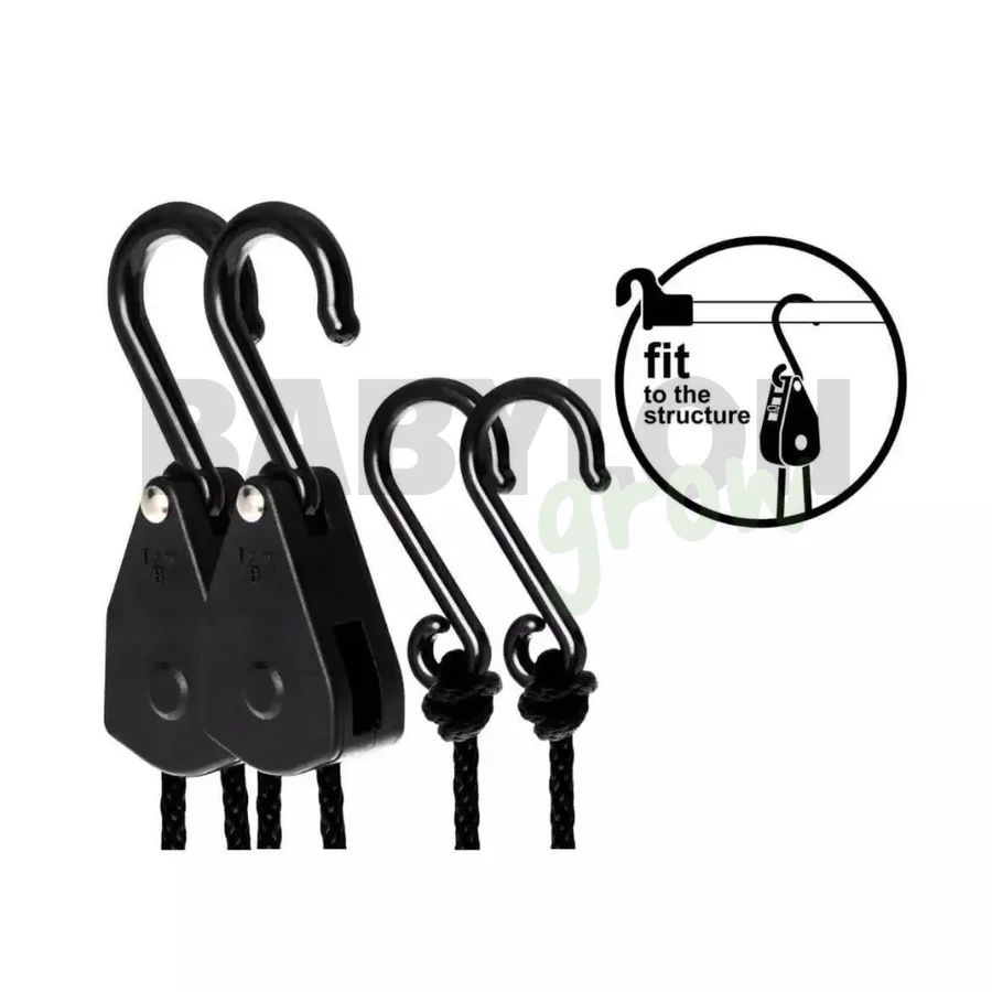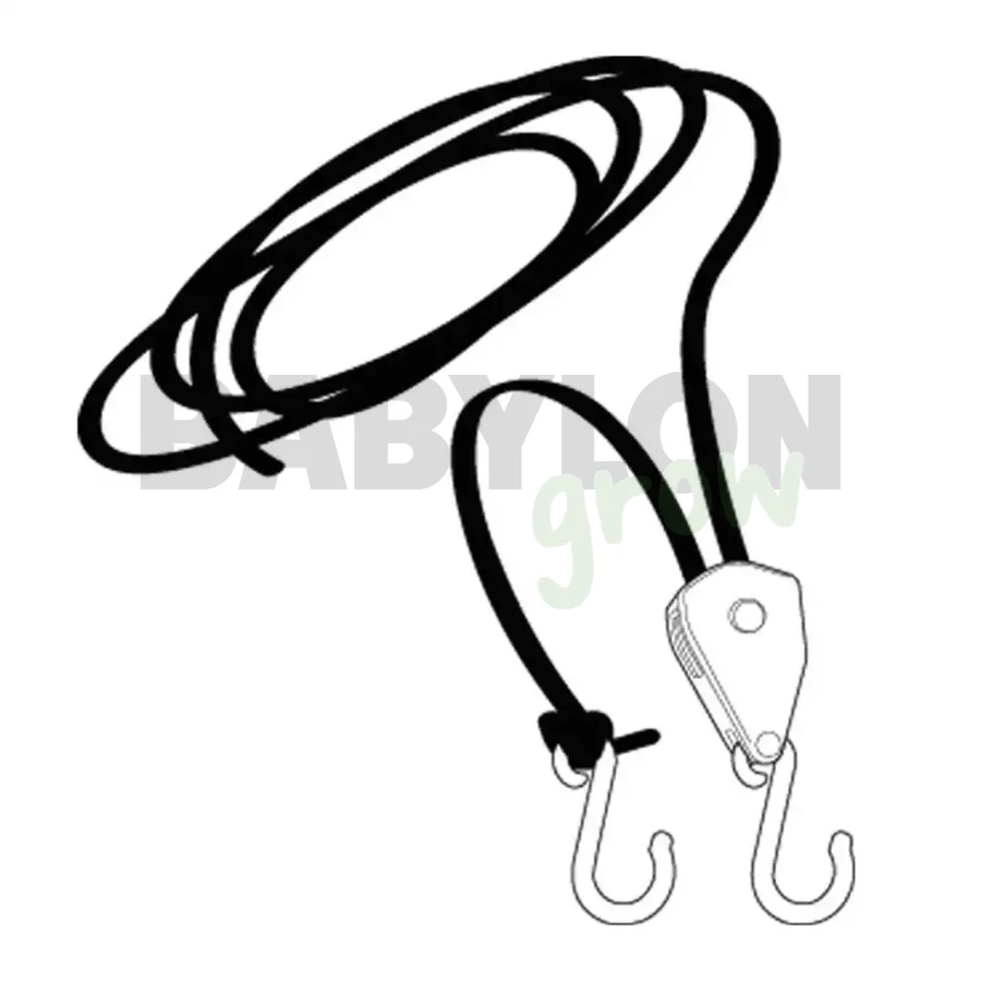 A Garden Highpro lámpa függesztő készlet egy sokoldalú, beltéri rögzítőrendszer, amely ideális lámpák, szűrők és egyéb kiegészítők biztonságos felfüggesztéséhez. Páronkénti 5 kg-os teherbírásával stabil és megbízható tartást biztosít akár LED lámpákhoz, reflektorokhoz vagy aktív szénszűrőkhöz is. Az innovatív mechanizmusnak köszönhetően a rögzített eszközök magassága egyszerűen állítható: a zsinór meghúzásával felemelhetők, míg a kioldógomb megnyomásával könnyedén leengedhetők. A 110 cm hosszú zsinór két kampóval rendelkezik, így a felszerelés gyors és problémamentes.