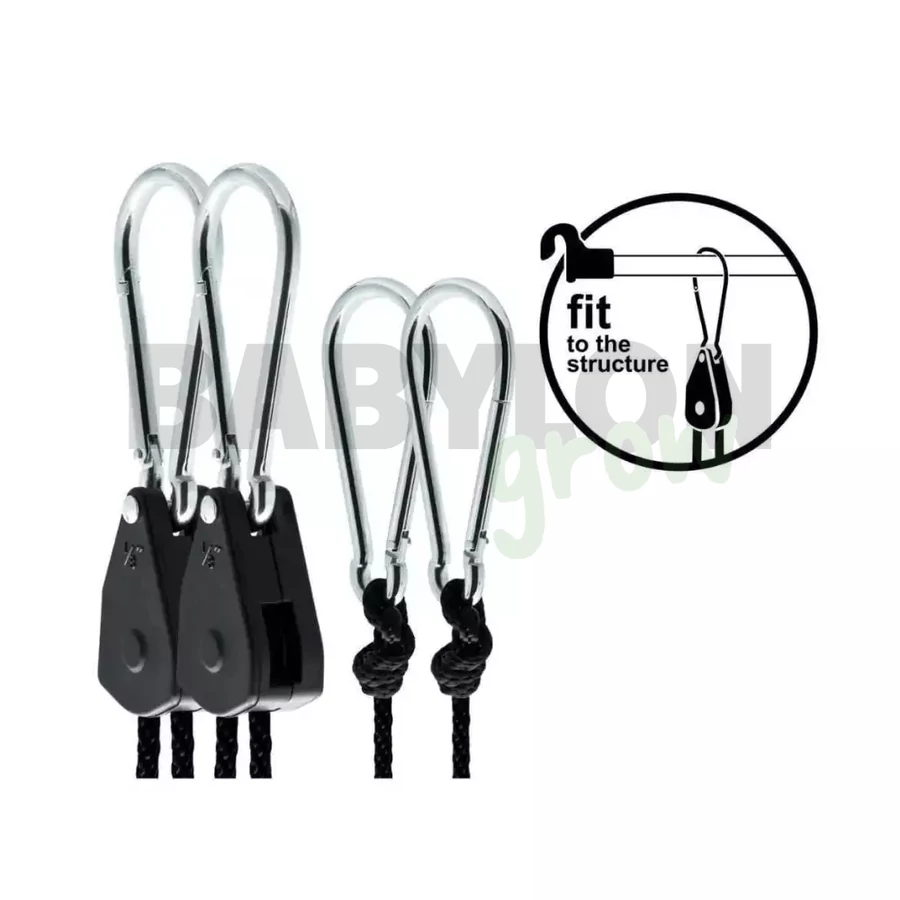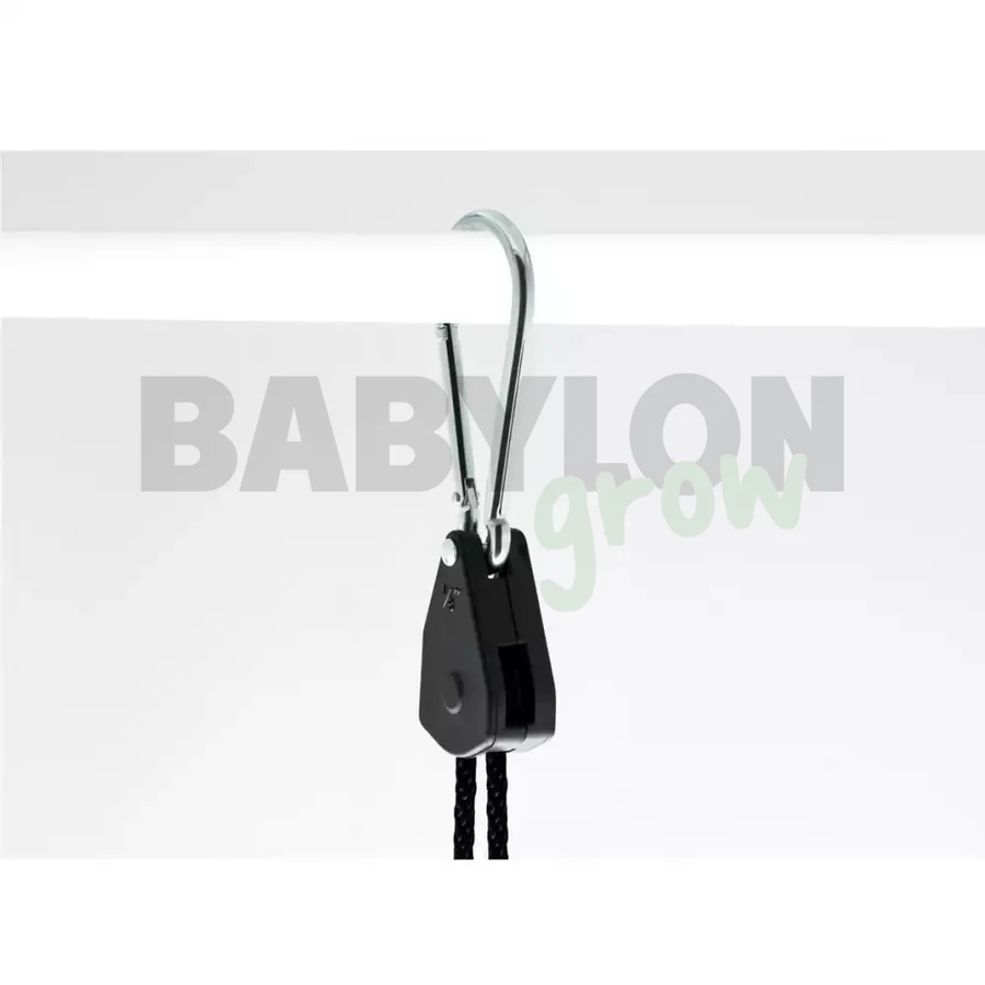A Garden Highpro lámpa függesztő készlet egy sokoldalú, beltéri rögzítőrendszer, amely ideális lámpák, szűrők és egyéb kiegészítők biztonságos felfüggesztéséhez. Páronkénti 5 kg-os teherbírásával stabil és megbízható tartást biztosít akár LED lámpákhoz, reflektorokhoz vagy aktív szénszűrőkhöz is. Az innovatív mechanizmusnak köszönhetően a rögzített eszközök magassága egyszerűen állítható: a zsinór meghúzásával felemelhetők, míg a kioldógomb megnyomásával könnyedén leengedhetők. A 110 cm hosszú zsinór két kampóval rendelkezik, így a felszerelés gyors és problémamentes.