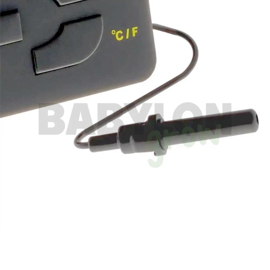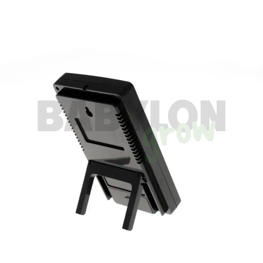 A Garden Highpro thermo-higrometer digital pro páratartalom mérő egy megbízható és sokoldalú eszköz a termesztőhelyiség mikroklímájának részletes nyomon követésére. Különlegessége, hogy két mérési pontot kínál: a beépített érzékelő mellett egy külső szenzor is tartozik hozzá, amely közvetlenül a növények közelében helyezhető el – így még pontosabb képet kaphatsz a növényállomány közvetlen környezetéről. A készülék háromsoros kijelzője egyszerre mutatja a benti és külső hőmérsékletet, a páratartalmat, valamint a napi minimum- és maximumértékeket. Az egyszerű kezelhetőség és a sokoldalú elhelyezési lehetőség (állvány vagy akasztó) révén gyorsan és kényelmesen használható bármilyen termesztőhelyiségben.