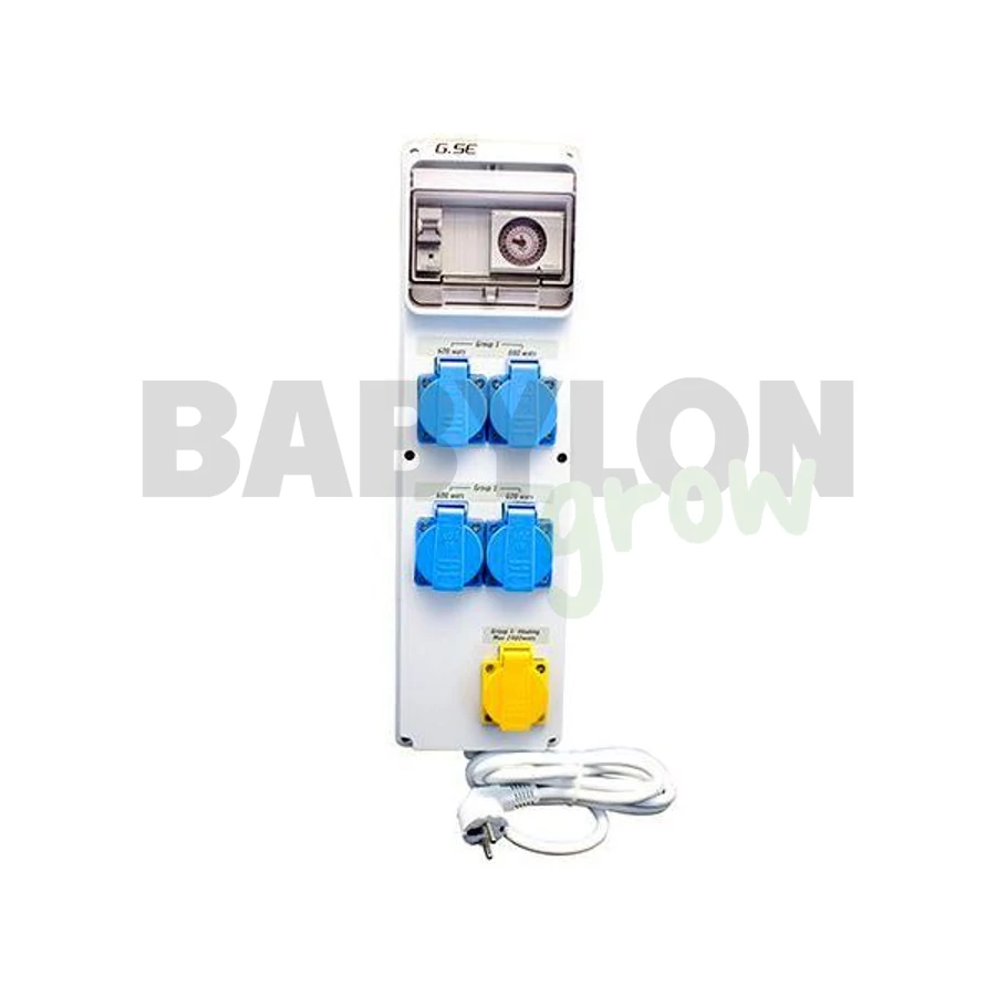 A GSE időzítő és fűtéskapcsoló box 4x600W egy megbízható, precíz és könnyen kezelhető vezérlőegység, amely ideális választás termesztőhelyiségek vagy bármilyen olyan rendszer számára, ahol fontos a világítás és a fűtés pontos időzítése és biztonságos működtetése.