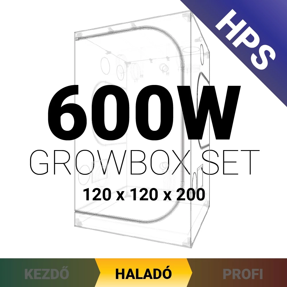 HPS növénysátor szett haladóknak 120x120x200 / 600W összetevői:
