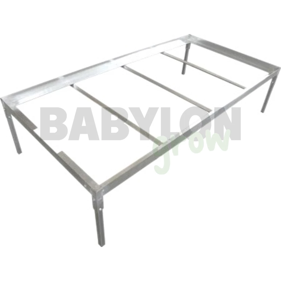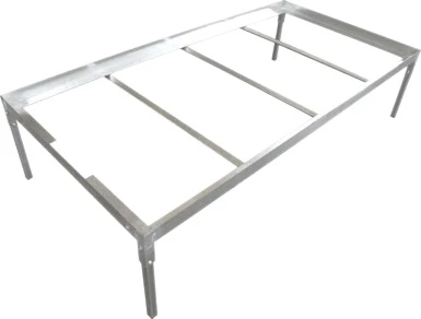 Dán tálcához tervezett strapabíró keret alumínium L szelvényekből. A szerkezet kialakítása lehetővé teszi az öntözés csöveinek elvezetését.