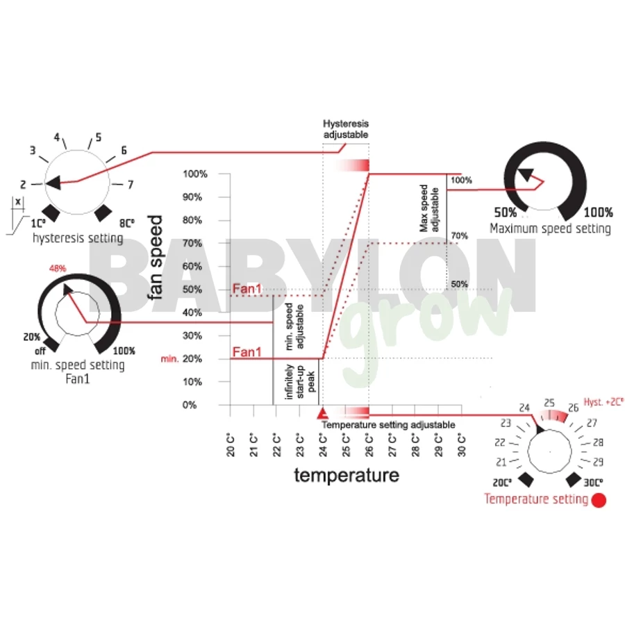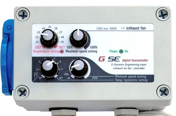 Ez a digitális ventilátorszabályzó a beállított hőmérséklet, páratartalom,minimum sebesség és alul nyomás függvényében szabályozza a befújó és elszívó ventilátorok fordulatszámát. A műszer alkalmas egy vagy több elszívó ventilátor leszabályzásához. A berendezés könnyen üzembe helyezhető, a kívánt hőmérsékletet, páratartalmat, minimum sebességet, alulnyomást egy-egy állítógomb segítségével lehet beállítani.