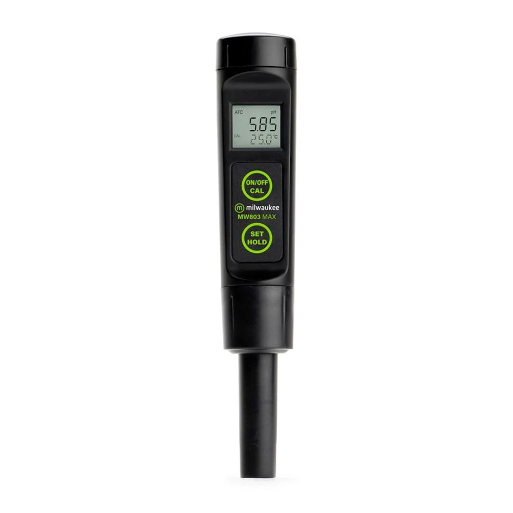 A Milwaukee MW803 pH/vezetőképesség/TDS/hőmérséklet-tesztelő egy kétszintű zsebteszter LCD-vel, amely pH-t / vezetőképességet / TDS-t / hőmérsékletet mér. A kijelző kiterjesztett 0,00 és 14,00 pH és 0 és 3999 μS/cm közötti értékeket mutat, 0 és 2000 ppm TDS között, és egyidejűleg 0,0 °C és 50,0 °C vagy 32,0 °F és 122,0 °F közötti hőmérsékletet mutat. Ideális gyors és pontos mérésekhez úszómedencékben, akváriumokban és kertészeti alkalmazásokban, valamint ipari és laboratóriumi alkalmazásokban is használható, mint például hűtőtornyok, élelmiszer-feldolgozás, bevonat, ivóvíz és szennyvíz stb.