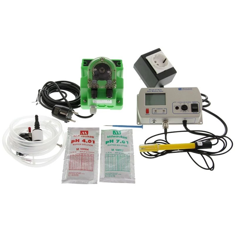 A mérő figyeli és ellenőrzi a víz pH értékét. Ha a berendezésen beállított értéktől eltér a mért pH, kigyullad a led lámpa és pH folyadékot adagol a vízbe, amíg az újra eléri a megfelelő szintet.