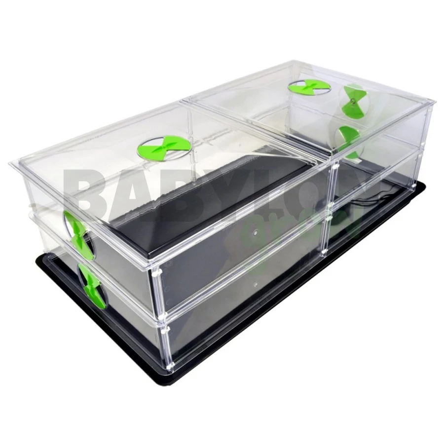 A Nutriculture Vitopod oldalt es felül is rendelkezik állítható szellőző nyílással, így könnyedén és hatékonyan tudjuk szabályozni a páratartalmat. Az első és egyetlen állítható magasságú propagátor. Ha már kezdik kinőni a nővények a propagátort bővítő modul segítségével, csak növeld meg a méretét, és máris elférnek a palánták.