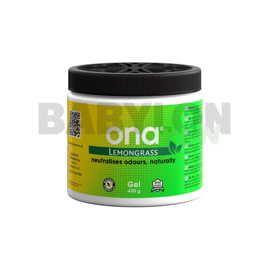 Az ONA Gel szagsemlegesítő zselé (Lemongrass) hatékony szagsemlegesítő zselé. Nem elfedi, hanem tartósan semlegesíti még a legkellemetlenebb szagokat is. Illóolajok különleges keveréke polimer zselében feloldva. A levegővel érintkezve a gél részecskéi semlegesítik a szagmolekulákat, melyekkel érintkeznek. Szagsemlegesítő hatóanyaga szabályozottan szabadul fel, így biztosítva folyamatosan optimális eredményt. Ipari erősségű, mégis biztonsággal használható háztartásokban is, emberek, állatok és növények mellett.