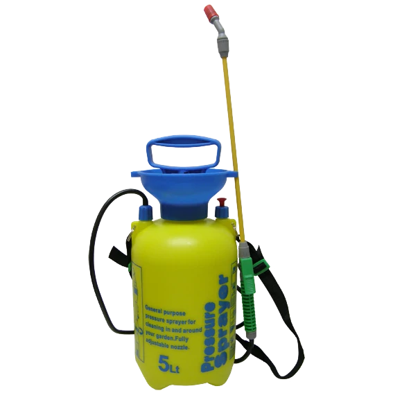 Öt literes, pumpával és belső szívattyúval ellátott permetező spray. A csomag biztonsági szelepet, állítható szórófejet és hordozópántot is tartalmaz. Ideális kisebb ültetvények szórt vagy direkt öntözéséhez, tápoldattal, gyom- és rovarírtóval való kezeléshez.