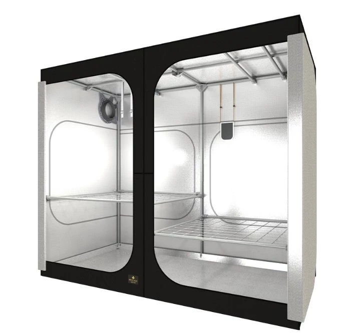 A Secret Jardin DARKROOM Grow Box R4.00 termősátrat 50–150 cm magas növények számára tervezték, 2,25–9,00 m2-es növekedési terekkel. DF25 csatlakozással rendelkezik a be- és kimenő levegő kezeléséhez, és mindent tartalmaz, amire a teljes rendszer telepítéséhez szükség van.