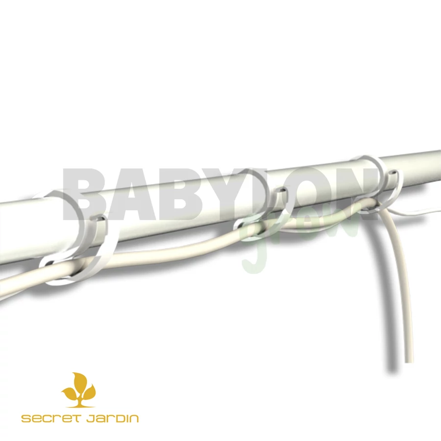 Secret Jardin kábelakasztó (d: 16mm / 19mm / 25mm) egy hasznos kiegészítő a growboxban történő kábelezés során. Biztosítja, hogy a kábelek rögzítve maradjanak az oszlopok mentén, ne lógjanak be a termesztőhelyiségbe, és ne zavarják a világítást vagy a növényeket.