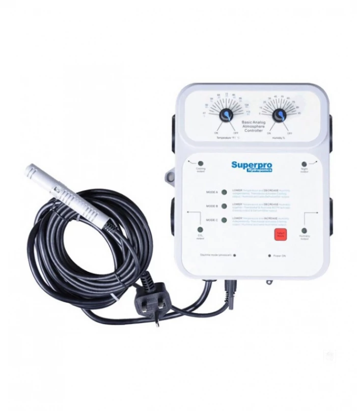 A Superpro Hydroponics AC-1 analóg klímaszabályzó a hőmérséklet és a páratartalom egyszerű, de precíz kezelésére szolgál a termesztő területeden. Ez a készülék segít fenntartani azokat az ideális környezeti feltételeket, amelyek elengedhetetlenek a növényeid egészséges növekedéséhez és a bőséges terméshez, anélkül, hogy bonyolult digitális beállításokkal kellene bajlódnod.