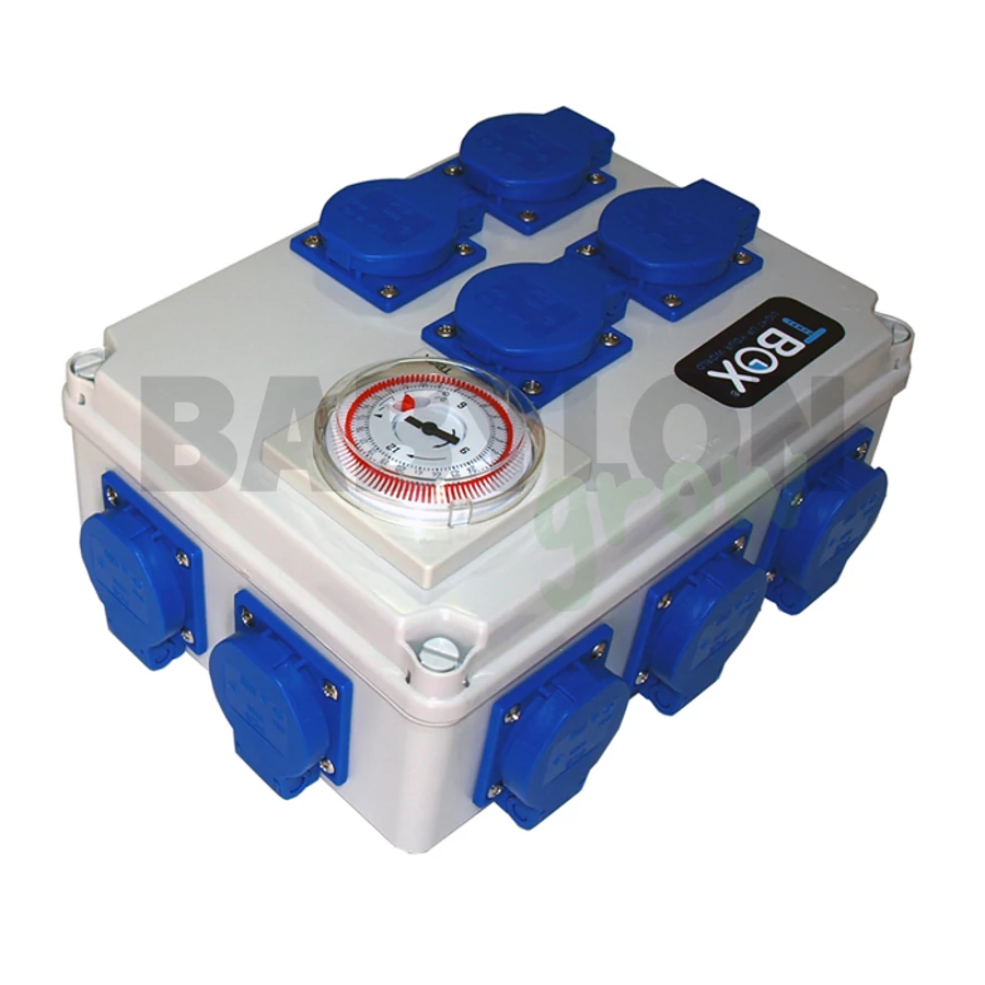 A TBOX12 mechanikus időkapcsoló egy többbázisú időzítő doboz, többcsatlakozásos analóg eszköz, amely egy mozdulattal automatikusan vezérli és szabályozza a beltéri termesztőtérben elhelyezett világítóberendezések működését.