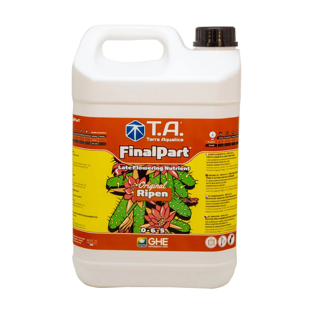 A Terra Aquatica Tripart Final Part (GHE Ripen) a késői virágzás időszakában használatos tápoldat, mely nem igényli további boosterek használatát. Fokozza a virágzást és a hatóanyagok termelését, ezen felül megszünteti a tápanyagfelesleget.